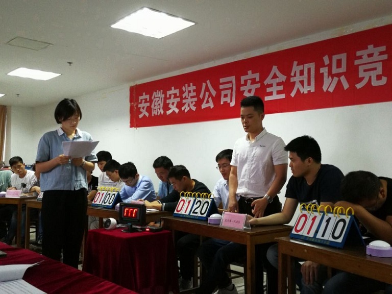此次競賽由公司安全管理部及工會聯(lián)合主辦。來自機關幾個部門、一分公司、四分公司、六分公司、安慶分公司、蚌埠分公司、房建分公司和聯(lián)營項目九個代表隊的安全管理人員共27名選手參加了比賽。公司總工辦主任牛守義、安全管理部經理王岳濤、工程管理部副經理蔣秀正擔任本次比賽的評委。公司董事長、總經理王軍邦,黨委書記、副總經理胡六中,紀委書記、工會主席李寬旭及各分公司分管領導、工會主席、安全科長到場觀賽。
