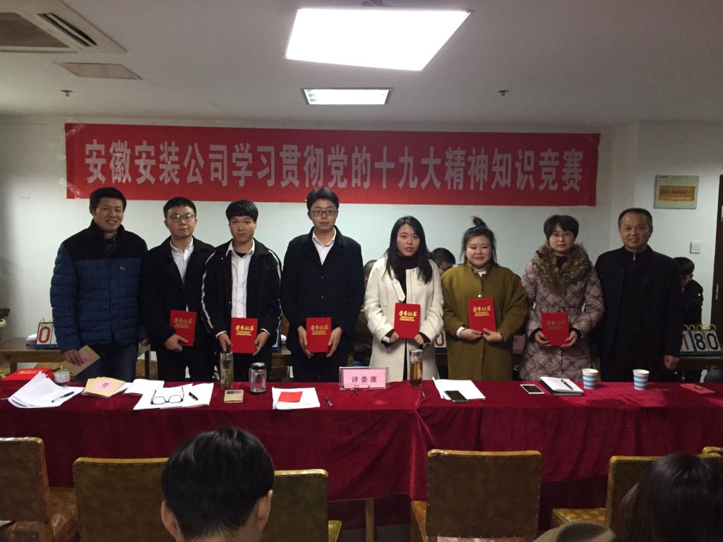 12月6日下午,安徽安裝公司學(xué)習(xí)貫徹黨的十九大精神知識競賽成功舉辦。來自公司機(jī)關(guān)及所屬各分公司黨支部8支代表隊(duì)24名選手參加比賽。