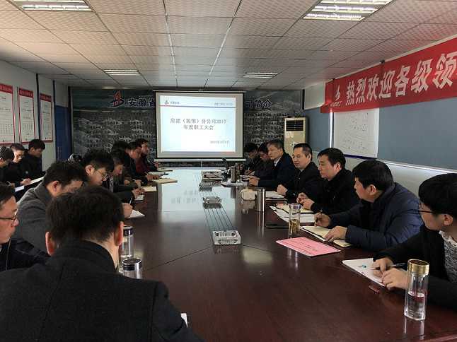 2018年3月9日下午,房建(裝飾)分公司召開2017年度職工大會,公司黨委書記、副總經(jīng)理胡六中,紀(jì)委書記、工會主席李寬旭,總工程師、房建(裝飾)分公司副經(jīng)理吳繼成出席會議。會議由吳繼成主持。