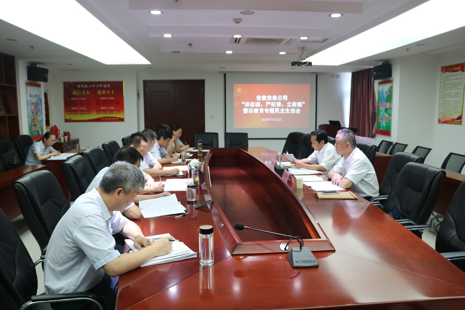 根據(jù)集團(tuán)公司黨委關(guān)于“講忠誠、嚴(yán)紀(jì)律、立政德”專題警示教育統(tǒng)一部署,按照《安徽安裝公司關(guān)于以魯煒案徽商集團(tuán)窩案等案件為反面教材開展“講忠誠、嚴(yán)紀(jì)律、立政德”專題警示教育的安排意見》要求,7月12日下午,安徽安裝公司黨委召開“講忠誠、嚴(yán)紀(jì)律、立政德”警示教育專題民主生活會(huì)。集團(tuán)公司黨委副書記牛曙東,紀(jì)委副書記、紀(jì)檢監(jiān)察室主任龔志酬到會(huì)指導(dǎo)。會(huì)議由公司黨委書記、副總經(jīng)理胡六中主持,公司領(lǐng)導(dǎo)班子成員參加會(huì)議。