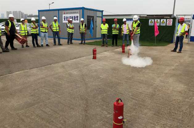 演練正式開始前,項目部全體人員在“安全消防演練”的紅色橫幅上鄭重的簽下了自己的名字。演練按預(yù)定方案進行,項目部安全員闡述了本次演練的目的和意義,介紹基礎(chǔ)的火災(zāi)消防知識,點明掌握火災(zāi)逃生的基本方法。項目管理公司安全工程師針對項目部可能存在的火災(zāi)隱患做了重點闡述,并指出項目部可能發(fā)生火災(zāi)的地點主要為生活區(qū),重點強調(diào)各班組長在生活區(qū)要做好宣傳帶頭作用,將火災(zāi)隱患扼殺在萌芽之中。項目技術(shù)負(fù)責(zé)人李冬現(xiàn)場講解并示范了常見的手提式干粉滅火器的使用方法,而后參演人員親自體驗了如何正確的使用滅火器。消防演練緊張有序,安全保證工作到位,演練達到預(yù)期效果。