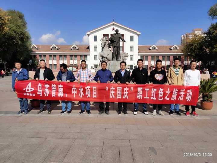 為慶祝中華人民共和國(guó)69周年華誕,進(jìn)一步激發(fā)員工愛(ài)國(guó)主義熱情。2018年10月3日新疆烏蘇市西區(qū)管廊項(xiàng)目部及烏蘇市西區(qū)污水處理-中水回用工程項(xiàng)目部組織全體人員前往石河子市軍墾博物館參觀學(xué)習(xí),回顧光輝歷史,重溫革命精神。