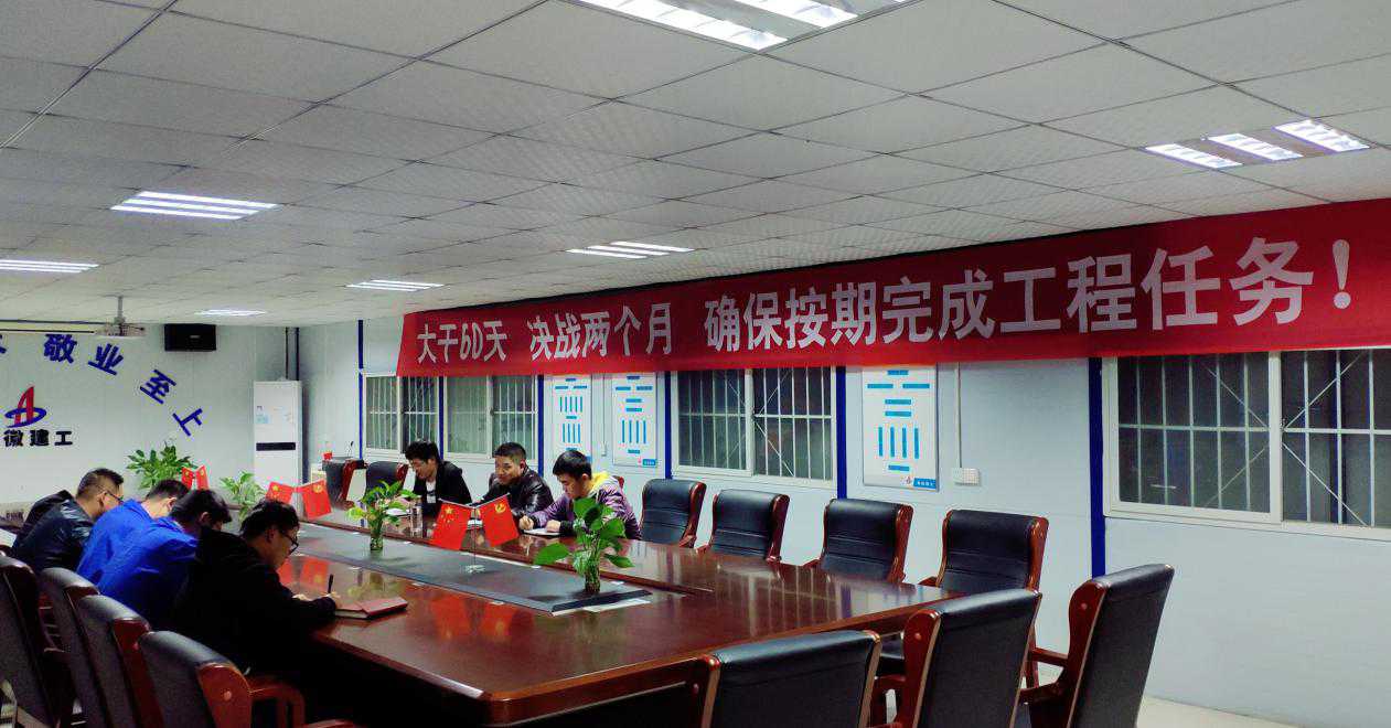 為激發(fā)項目員工積極性與創(chuàng)造性,確保2018年底前施工任務的順利完成,第一分公司阜陽國幀城南新區(qū)供熱首站機電安裝工程項目部積極響應公司號召,開展勞動競賽活動。11月12日項目部召開了“大干60天”勞動競賽活動動員會,掀起了大干快上的施工熱潮。
