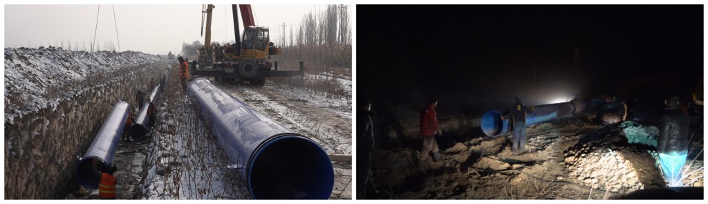 該工程是在野外長(zhǎng)距離作業(yè),管道沿途需要穿過(guò)高速、省道、鐵路、亞歐光纜及眾多鄉(xiāng)村道路和田間陰溝,施工區(qū)域內(nèi)有農(nóng)田、戈壁、沙漠,沼澤等,自然環(huán)境極其惡劣,施工地質(zhì)極為復(fù)雜。尤其在步入11月,新疆烏蘇市正式進(jìn)入寒冬季節(jié),期間平均氣溫都在零下十度以下,并時(shí)常飛舞著雪花,由于晝夜溫差大,夜間項(xiàng)目上的氣溫更是達(dá)到零下二三十度,這給項(xiàng)目部施工帶來(lái)了嚴(yán)重挑戰(zhàn),但項(xiàng)目部員工沒(méi)有被惡劣的環(huán)境所嚇倒,他們“逢山開(kāi)路、遇水搭橋”,努力克服各方面不利因素,合理安排施工進(jìn)度計(jì)劃。全體職工發(fā)揚(yáng)安徽建工人“特別能吃苦,特別能戰(zhàn)斗”的企業(yè)作風(fēng),在公司“大干60天”勞動(dòng)競(jìng)賽的正向激勵(lì)下,不畏環(huán)境艱苦,抓質(zhì)量,保安全,戰(zhàn)荒漠,斗嚴(yán)寒,每天堅(jiān)持戰(zhàn)斗在生產(chǎn)第一線,哪里有施工,哪里就有管理人員的堅(jiān)定身影。