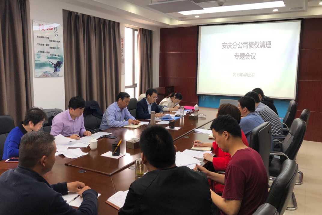 2019年4月23日,公司副總經(jīng)理高飛在財(cái)務(wù)部經(jīng)理許素寒、紀(jì)檢監(jiān)察室主任王偉、工程管理部副經(jīng)理龍海建等人的陪同下蒞臨安慶分公司,召開債權(quán)清理專題會(huì)議。