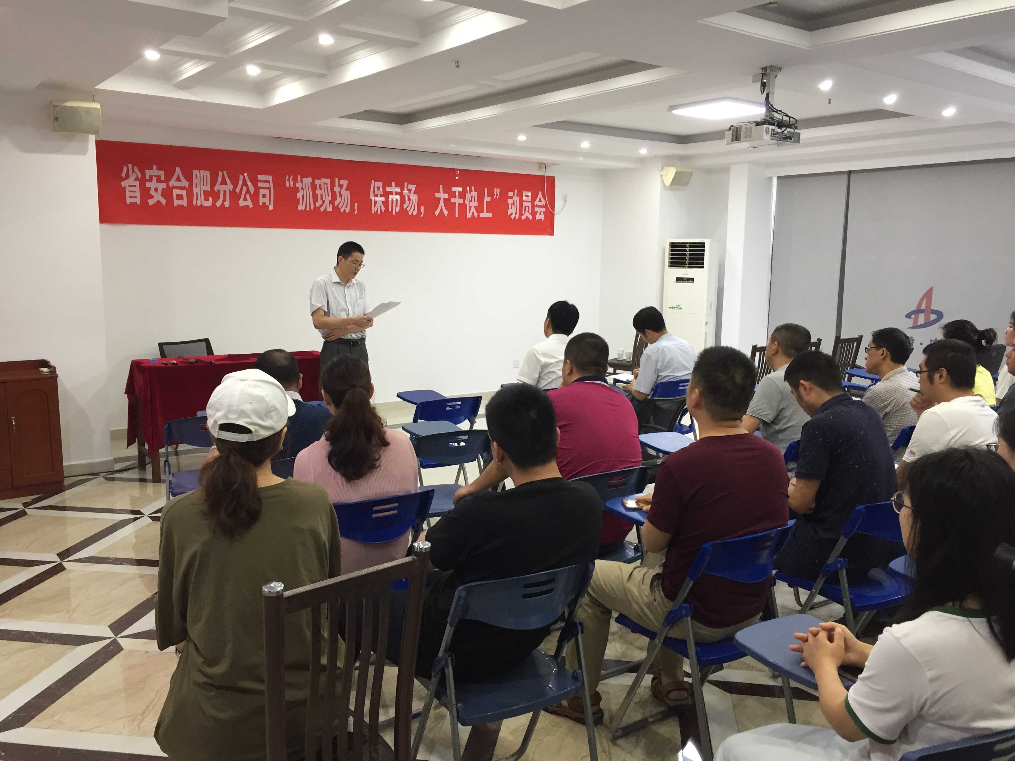 合肥分公司積極響應公司的號召,2019年6月19日上午,分公司組織機關全體人員和合肥地區(qū)項目經(jīng)理及項目管理人員共計30余人在公司15樓職工之家召開了“抓現(xiàn)場、保市場、大干快上”動員會。