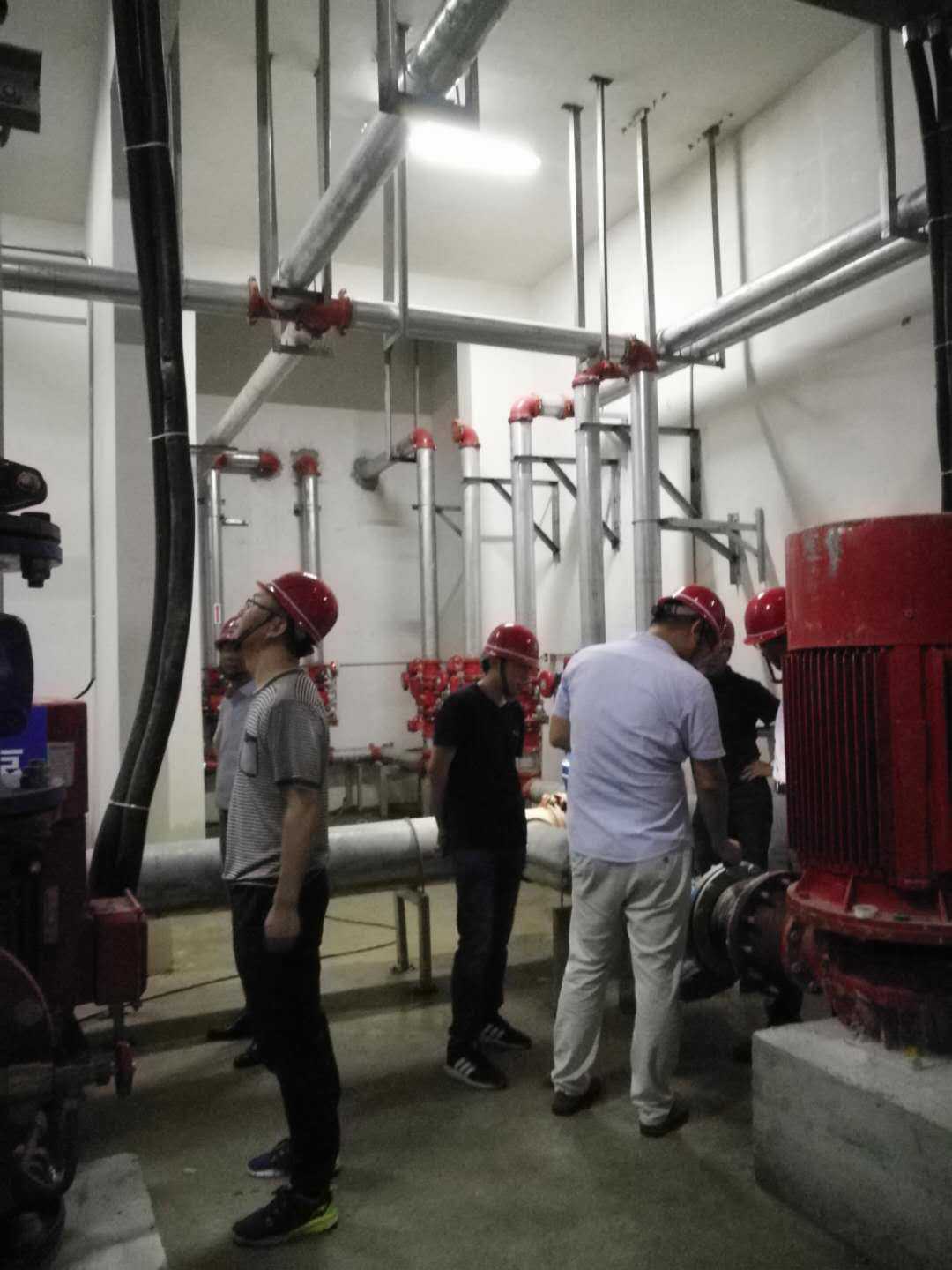 檢查組到達(dá)工地后,首先來到施工現(xiàn)場實體查驗了地下車庫消火栓系統(tǒng)、噴淋系統(tǒng)、通風(fēng)系統(tǒng)、火災(zāi)自動報警系統(tǒng)的施工安裝質(zhì)量,對施工班組操作是否規(guī)范、安全防護(hù)用品佩戴使用是否正確、現(xiàn)場材料存儲、堆放標(biāo)識是否規(guī)范等方面進(jìn)行了重點檢查。并對地下車庫、泵房的管道和設(shè)備安裝存在的問題和不足提出意見和建議,項目部人員認(rèn)真聽取、詳細(xì)作好記錄,與檢查組進(jìn)行了深入的現(xiàn)場交流。