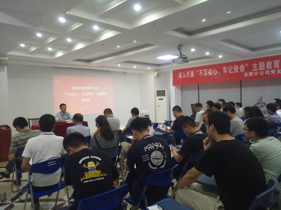 為深入開展“不忘初心,牢記使命”主題教育活動,將主題教育落到實處、產(chǎn)生實效,切實加強分公司黨員干部的責(zé)任感、使命感、擔(dān)當(dāng)感,合肥分公司黨支部于7月17日下午在公司十五樓職工之家召開了“不忘初心,牢記使命”主題教育座談會,分公司領(lǐng)導(dǎo)班子成員、機關(guān)全體人員、在肥項目部人員共計40余人參與會議。會議由分公司黨支部書記胡迎東主持。