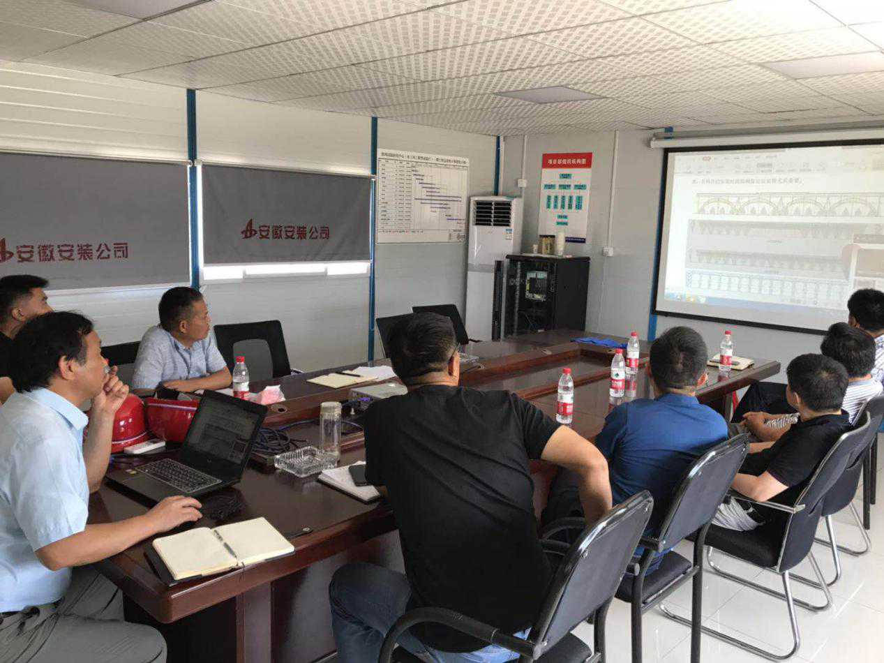 高總一行首先深入施工現(xiàn)場(chǎng),頂著烈日對(duì)鋼結(jié)構(gòu)管桁架組裝現(xiàn)場(chǎng)進(jìn)行了詳細(xì)檢查。隨即召開了項(xiàng)目推進(jìn)匯報(bào)會(huì)暨鋼結(jié)構(gòu)施工方案研討會(huì)。會(huì)上,高總詳細(xì)詢問(wèn)項(xiàng)目在進(jìn)度保障、成本管控、夏季防暑降溫、項(xiàng)目后勤保障等方面的措施,并與項(xiàng)目部技術(shù)人員進(jìn)行交流,同時(shí)對(duì)四聯(lián)拱、主桁架等安裝關(guān)鍵節(jié)點(diǎn)進(jìn)行詳細(xì)的技術(shù)指導(dǎo)和交底。他要求項(xiàng)目部一定要嚴(yán)格監(jiān)控鋼構(gòu)變形,強(qiáng)調(diào)對(duì)稱點(diǎn)吊裝,時(shí)刻監(jiān)控結(jié)構(gòu)變形量,形成穩(wěn)定體系后再允許卸載。會(huì)上還就項(xiàng)目存在的困難等方面給與了詳細(xì)指導(dǎo)和解答。