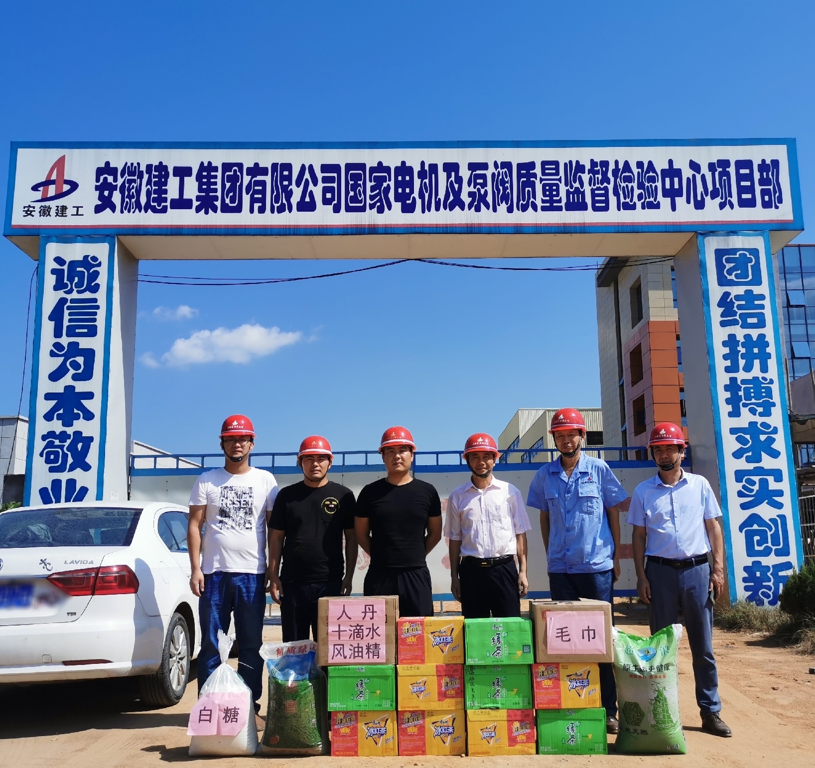 7月29日上午公司領(lǐng)導(dǎo)紀(jì)委書記、工會(huì)主席李寬旭赴涇縣國(guó)家電機(jī)及泵閥質(zhì)量監(jiān)督檢驗(yàn)檢測(cè)中心A鋼結(jié)構(gòu)廠房安裝工程項(xiàng)目部給現(xiàn)場(chǎng)施工人員送來(lái)夏日的清涼。公司領(lǐng)導(dǎo)帶來(lái)了白糖、綠豆、十滴水、藿香正氣等夏日所需防暑降溫的食品、藥品,親自送到一線每位員工手中,為沉悶炎熱的工地送來(lái)絲絲涼意。
