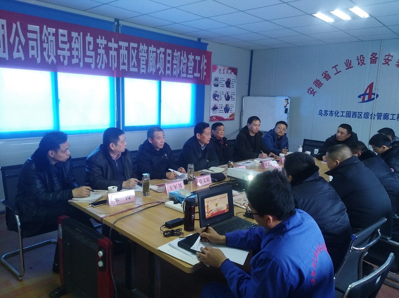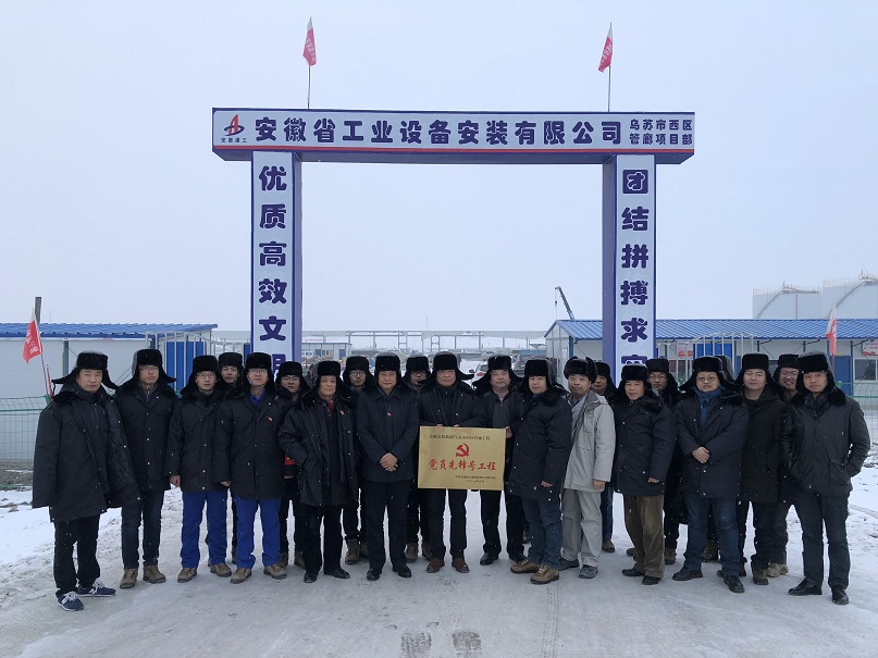 2018年1月12日,集團(tuán)公司黨委副書記牛曙東、紀(jì)委書記宋志華、黨委工作部主任徐文聯(lián)一行,在零下20度天氣,冒著凜冽的寒風(fēng),迎著飛舞的雪花,踏著濕滑的道路,蒞臨安徽安裝公司新疆烏蘇市工業(yè)園西區(qū)管廊項目驗收“黨員先鋒號”工程創(chuàng)建工作并舉行授牌儀式。集團(tuán)公司新疆辦事處負(fù)責(zé)人孫仁發(fā),投資公司黨總支書記余志剛,安徽路港公司副總經(jīng)理張俊,安徽安裝公司董事長、總經(jīng)理、黨委副書記王軍邦,總經(jīng)理助理、西北分公司經(jīng)理、新疆辦事處主任王軍陪同。創(chuàng)建驗收會議由徐文聯(lián)主持。