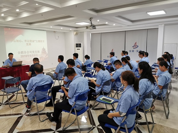 根據(jù)公司黨委“不忘初心、牢記使命”主題教育工作部署,9月6日下午,合肥分公司黨支部召開“不忘初心、牢記使命”主題教育黨課報告會,黨支部書記胡迎東作了題為《“不忘初心、牢記使命”主題教育成果推動合肥分公司發(fā)展》的黨課報告。分公司領(lǐng)導(dǎo)班子成員、全體黨員、機關(guān)工作人員參與會議聽取了報告。