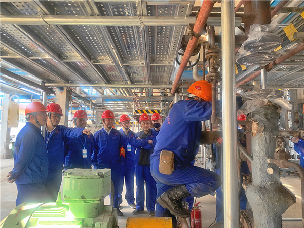 高飛、劉安俊一行深入項(xiàng)目一線,先后來(lái)到乙苯苯乙烯項(xiàng)目、煉油一部新增機(jī)泵密閉排放系統(tǒng)項(xiàng)目、催化裂解項(xiàng)目及Ⅰ、Ⅱ硫磺回收裝置增設(shè)煙氣后堿洗項(xiàng)目等工地進(jìn)行調(diào)研指導(dǎo)。每到一處,在認(rèn)真聽(tīng)取項(xiàng)目負(fù)責(zé)人關(guān)于項(xiàng)目概況、工程進(jìn)度等方面的匯報(bào)之后,還詳細(xì)了解工程施工前期準(zhǔn)備、人員組織、關(guān)鍵環(huán)節(jié)管控等情況,仔細(xì)詢問(wèn)目前施工組織遇到的困難及解決措施。