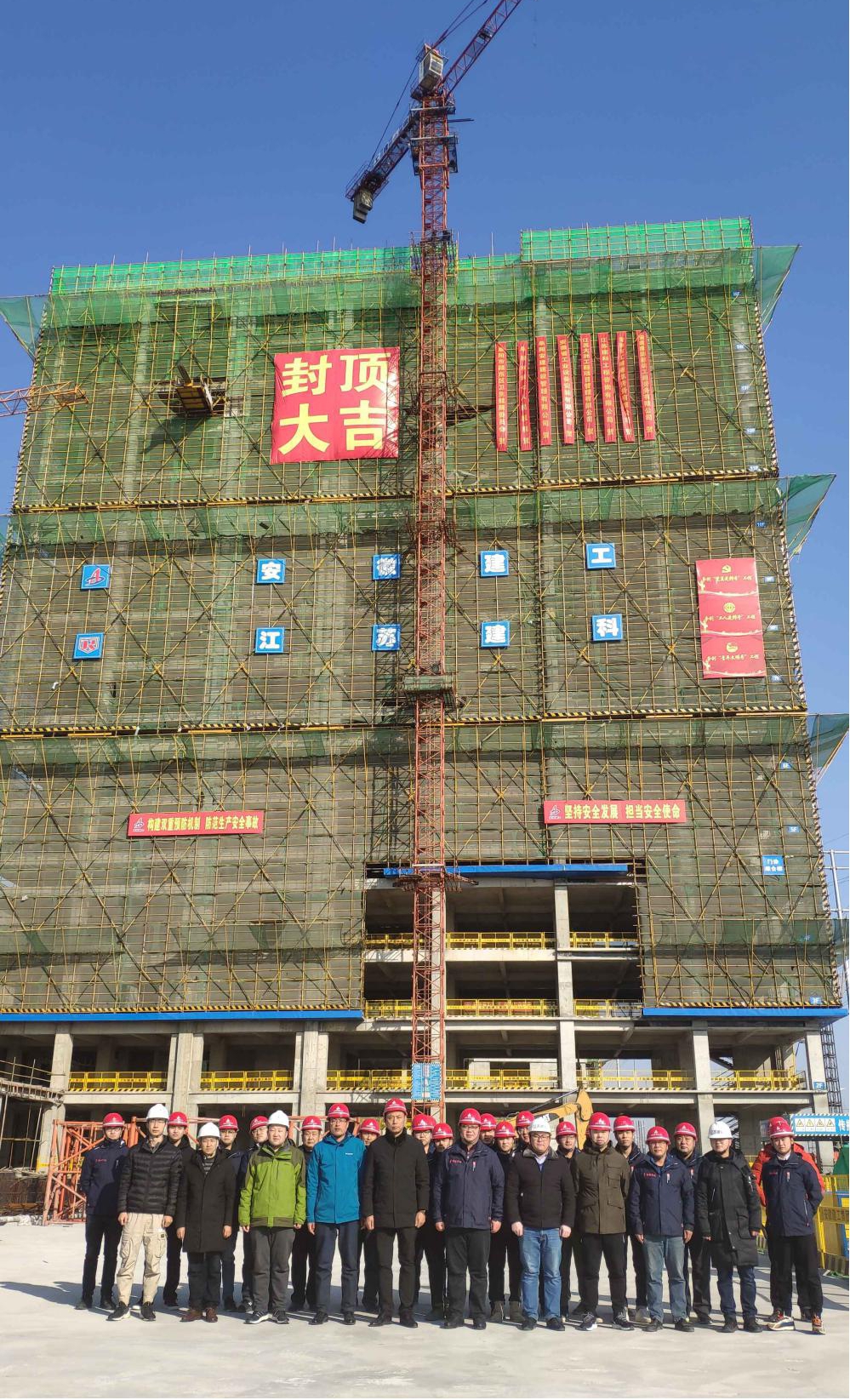 此次封頂可謂意義重大,不僅完成了項(xiàng)目部向集團(tuán)公司上報(bào)的“勞動(dòng)競賽”目標(biāo)任務(wù),更值得鼓舞的是,在當(dāng)前嚴(yán)峻的冬季環(huán)保形勢(shì)下,全體項(xiàng)目人員發(fā)揚(yáng)了安徽建工人“特別能吃苦,特別能戰(zhàn)斗”的企業(yè)作風(fēng),倒排工期、精密組織、統(tǒng)籌調(diào)度,齊心協(xié)力收獲了階段性的勝利。