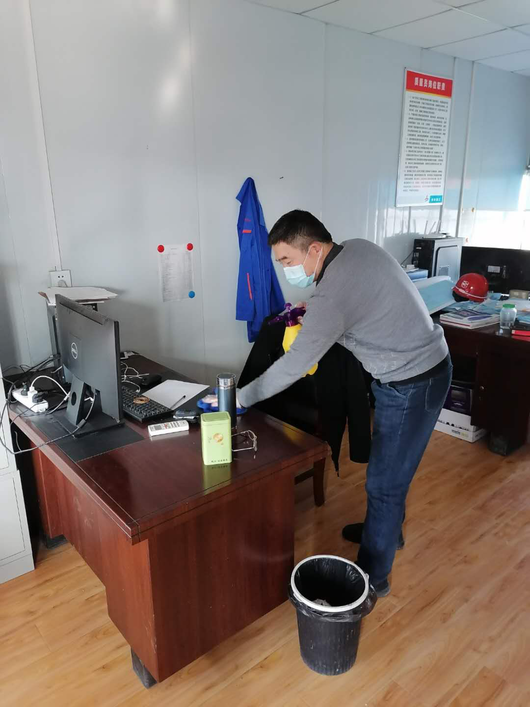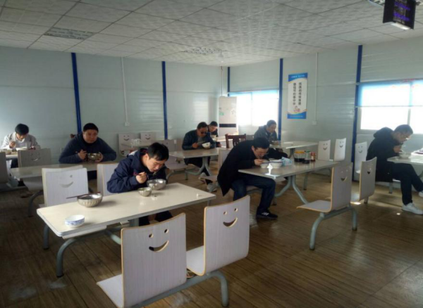 切實做好后勤保障工作。項目部對員工及工人的食宿進行統(tǒng)一管理。項目食堂由專人進行食物采買,確保食材的質(zhì)和量,每日記錄就餐情況統(tǒng)計表保證所有人員一日三餐安全健康。施工現(xiàn)場、辦公區(qū)域及宿舍每日安排專人定時消毒。宿舍設(shè)立住宿人員值班表,每天打掃衛(wèi)生保持房間清潔。