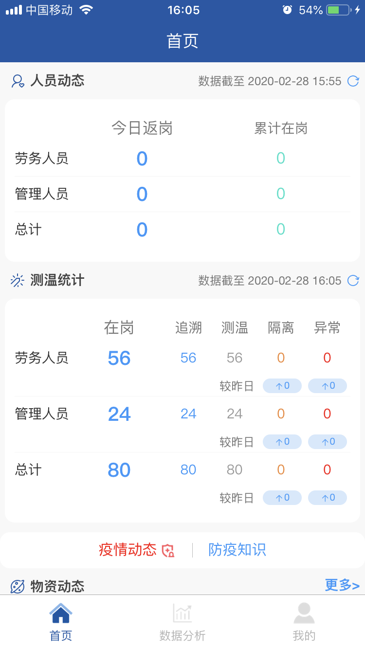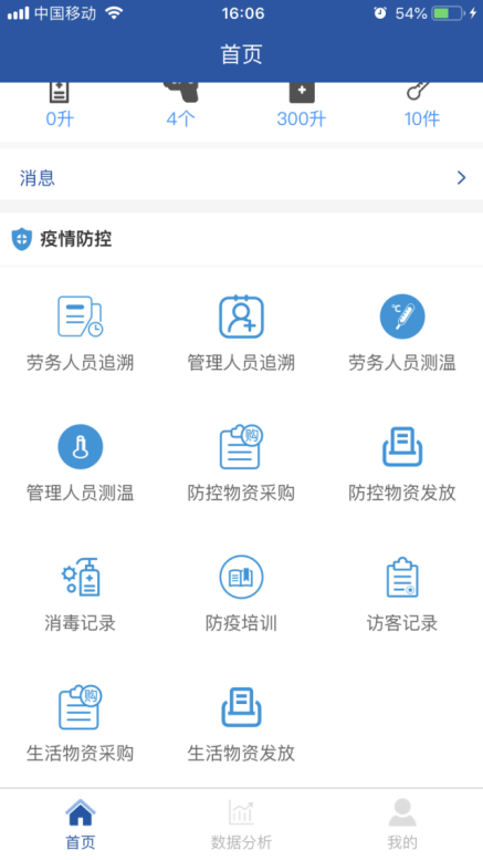 項目全面推行“返崗復(fù)工疫情防控系統(tǒng)”APP。主頁面包括勞務(wù)人員追溯、勞務(wù)人員測溫、防控物資采購、消毒記錄、疫情培訓(xùn)等11個專題版面,通過這些功能可線上及時填報人員返崗日期、體溫、癥狀及是否為留守人員等詳細(xì)信息,還有項目部的疫情物資采購情況、環(huán)境衛(wèi)生的消殺情況等相關(guān)信息,使上線人員時時了解疫情防控動態(tài),充分借助信息技術(shù)手段,全力打贏疫情防控“戰(zhàn)役”。 借助這一平臺確保項目部實時、準(zhǔn)確、有效地掌握現(xiàn)場人員的健康情況,助力疫情防控工作。