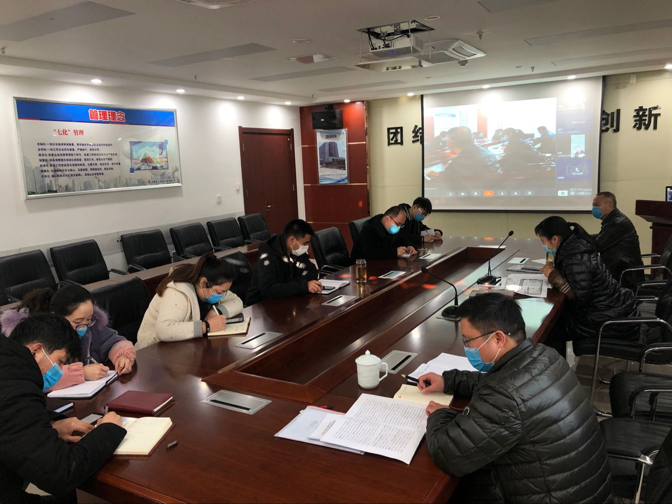 支部分別通過黨員視頻會、項目例會、團支部會議等多種形式學習宣貫安徽建工控股一屆七次職代會精神、安徽安裝第十六屆七次職代會精神、《安徽建工集團控股有限公司疫情防控期間復工管理方案》及《安徽安裝公司關(guān)于切實做好復工復產(chǎn)前疫情防控工作的通知》等疫情防控相關(guān)文件精神。與此同時,為營造濃厚的學習氛圍,還在項目現(xiàn)場制作張貼宣傳展板,并把學習資料上傳到分公司QQ工作群,把職代會精神和疫情防控文件宣傳至項目一線。