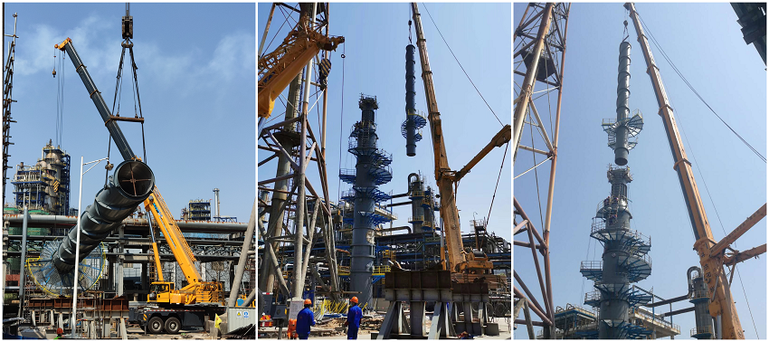 繼3月18日“Ⅰ、Ⅱ硫磺回收裝置增設(shè)煙氣后堿洗流程項(xiàng)目”脫硫塔下段吊裝成功,安慶石化項(xiàng)目部一鼓作氣,爭(zhēng)分奪秒,于3月20日下午成功完成脫硫塔上段吊裝任務(wù)。至此,安慶石化項(xiàng)目部后堿洗項(xiàng)目為之關(guān)鍵的吊裝任務(wù)圓滿落下帷幕。
