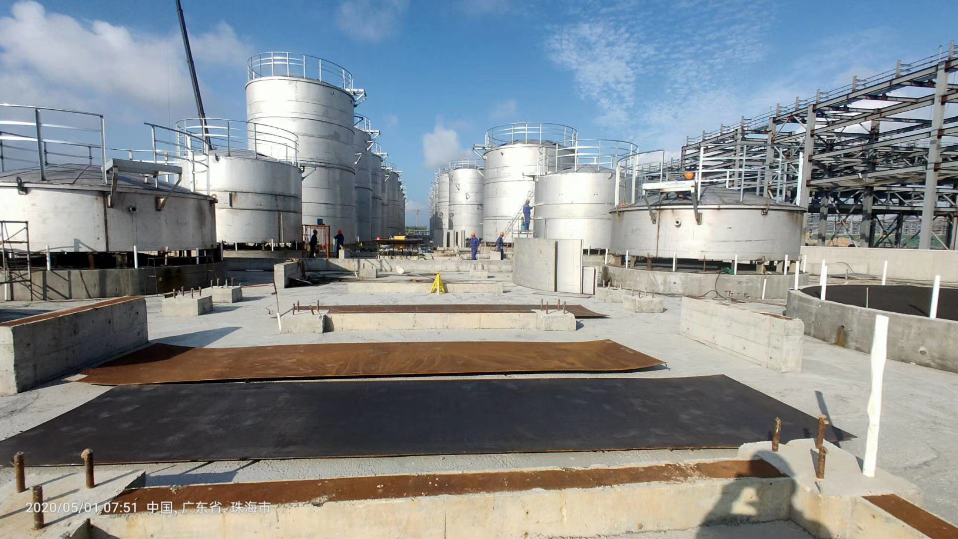 烈日下的工地上,機(jī)器轟鳴、人聲鼎沸,腳手架上,焊花四閃,車輛塔吊穿梭在項(xiàng)目現(xiàn)場(chǎng),大型儲(chǔ)物罐及管廊鋼結(jié)構(gòu)框架已初具規(guī)模,珠海利隆項(xiàng)目部現(xiàn)場(chǎng)呈現(xiàn)出井然有序的繁忙景象。