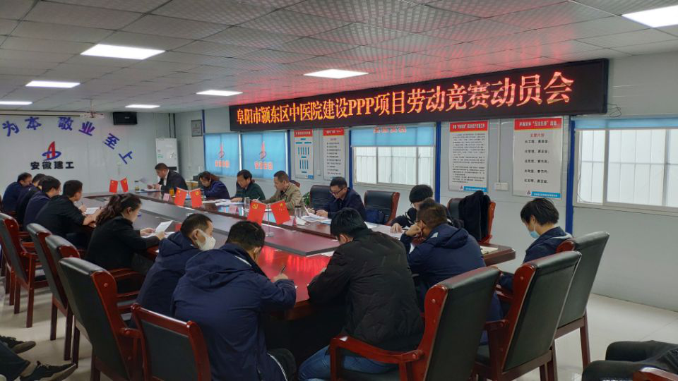 4月8日下午,阜陽市潁東區(qū)中醫(yī)院建設PPP項目部召開2020年勞動競賽動員會。公司黨委書記、董事長胡六中,副總經(jīng)理高飛,紀委書記、工會主席李寬旭及公司相關(guān)部門人員、房建(裝飾)分公司班子成員及項目部員工參會,會議由分公司黨支部副書記張曼主持。