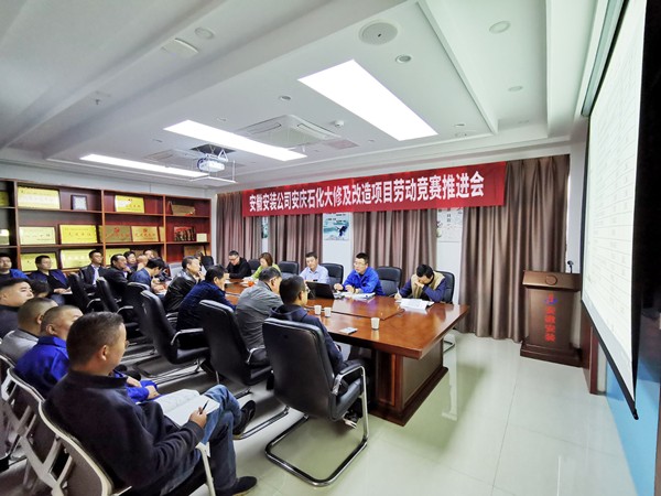 11月2日上午,安徽安裝公司召開了安慶石化大修及改造項(xiàng)目勞動(dòng)競賽推進(jìn)會(huì),安慶分公司領(lǐng)導(dǎo)班子、各項(xiàng)目經(jīng)理、項(xiàng)目管理人員以及施工班組負(fù)責(zé)人共四十余人參會(huì)。