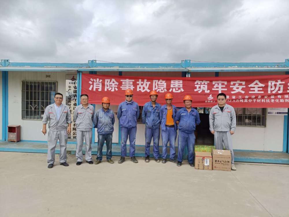 6月13日,年產(chǎn)12.5萬噸高分子材料抗老化助劑項(xiàng)目部開展了“送清涼”活動(dòng),為項(xiàng)目一線施工人員送上了防暑降溫物品,送去了夏日清涼,做好高溫天氣下一線施工人員的防暑降溫工作。