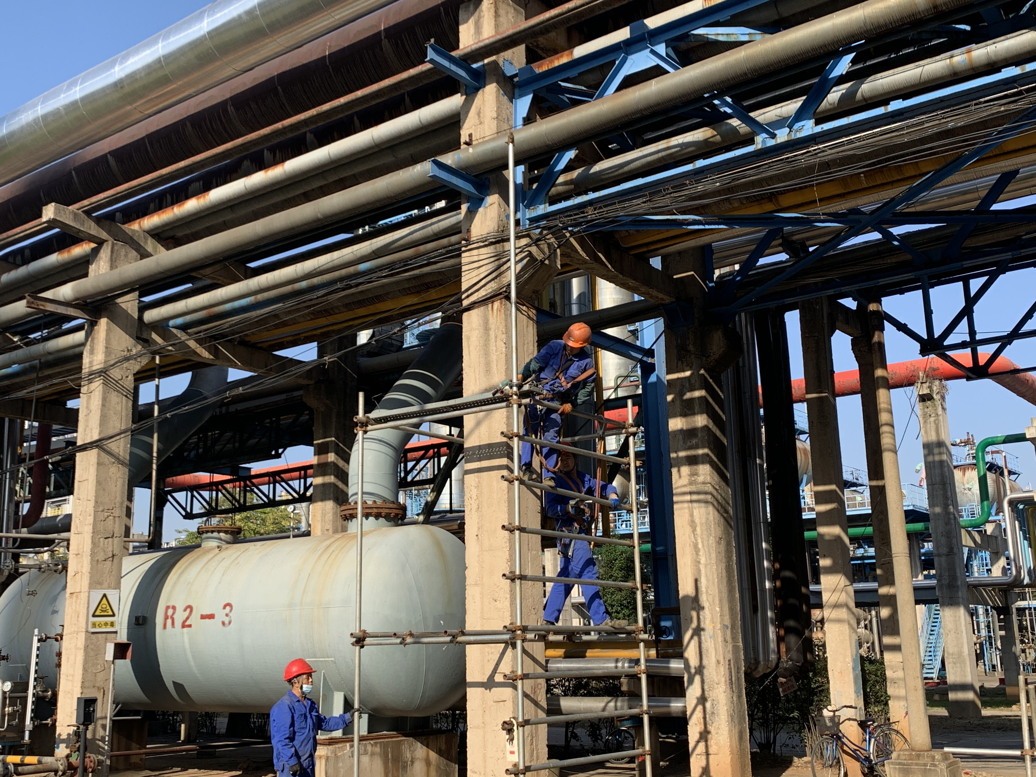 安慶石化低二腈線隱患處理項目在茅青路液化氣罐路口低Ⅱ線分支起至腈綸西圍墻內(nèi)界區(qū),對原有管道拆除換新。目前施工各項工作均已完成并驗收,相關作業(yè)物資已經(jīng)清理完畢,做好拆除腳手架前的各項準備,按自上而下先裝者后拆,后裝者先拆,逐步拆除,一步一清。