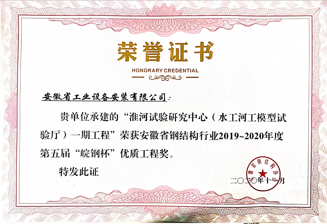 近日,以“聚焦十四五,展望鋼結(jié)構(gòu)”為主題的安徽省鋼結(jié)構(gòu)協(xié)會三屆二次會員代表大會暨學(xué)術(shù)交流會公布了“皖鋼杯”獲獎名單,安徽安裝公司承建的淮河試驗研究中心(水工河工模型試驗廳)一期工程榮獲“皖鋼杯”優(yōu)質(zhì)工程獎,公司黨委書記、董事長胡六中榮獲安徽省鋼結(jié)構(gòu)行業(yè)優(yōu)秀企業(yè)家,蚌埠分公司副經(jīng)理、淮河試驗研究中心一期工程項目經(jīng)理張斌被評為優(yōu)秀項目經(jīng)理。這也是我公司首次榮獲鋼結(jié)構(gòu)工程類獎項。