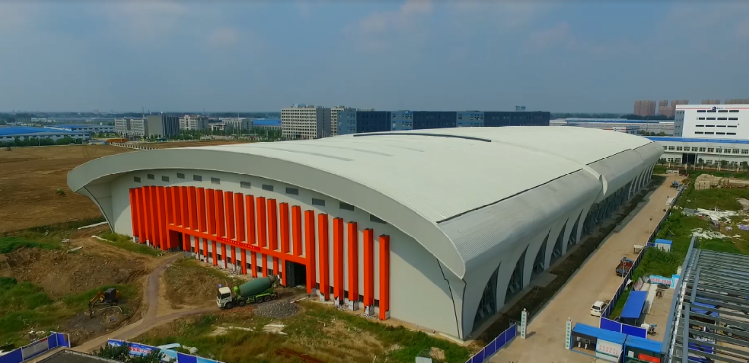 淮河試驗研究中心(水工河工模型試驗廳)一期工程總建筑面積約20000㎡,結(jié)構(gòu)形式為排架柱(圓鋼管)+三肢管桁架結(jié)構(gòu),構(gòu)件高度24米,跨度100米,抗震設(shè)防烈度為7度,為目前安徽省建設(shè)第二大跨度的鋼結(jié)構(gòu)工程。在項目施工過程中,安徽安裝公司嚴(yán)格按照設(shè)計圖紙及施工規(guī)范要求認(rèn)真組織安排施工,以一流的管理、一流的技術(shù)、一流的服務(wù),在保證工程質(zhì)量和施工安全的前提下,攻克了桁架跨度大、吊裝作業(yè)難度大等施工難點,確保了項目如期完工。項目主體結(jié)構(gòu)安全可靠,總體效果達(dá)到同類工程先進(jìn)水平,成為讓社會滿意的精品工程。