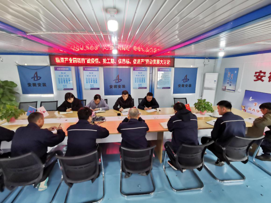 為認(rèn)真貫徹集團(tuán)公司“戰(zhàn)疫情、搶工期、保目標(biāo)、促超產(chǎn)”勞動(dòng)競(jìng)賽活動(dòng)精神,11月19日下午,安徽安裝公司圍繞“不能按時(shí)交工為恥辱”的履約意識(shí),在臨港項(xiàng)目部會(huì)議室組織開展“戰(zhàn)疫情、搶工期、保目標(biāo)、促超產(chǎn)”主題大討論活動(dòng)。公司紀(jì)委書記、工會(huì)主席李寬旭,公司相關(guān)部門負(fù)責(zé)人,蚌埠分公司領(lǐng)導(dǎo)班子成員,項(xiàng)目管理人員等共計(jì)20余人參加會(huì)議,會(huì)議由李寬旭主持。