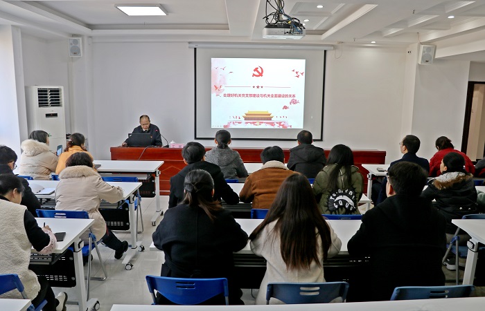 課上,江輝結(jié)合自身多年黨務(wù)知識(shí),從“處理好機(jī)關(guān)黨支部建設(shè)與機(jī)關(guān)全面建設(shè)的關(guān)系”“處理好機(jī)關(guān)黨支部領(lǐng)導(dǎo)與機(jī)關(guān)行政領(lǐng)導(dǎo)的關(guān)系”“處理好機(jī)關(guān)黨務(wù)工作與業(yè)務(wù)工作的關(guān)系”三個(gè)方面深刻闡述了作為機(jī)關(guān)黨支部應(yīng)如何積極發(fā)揮作用。他指出,機(jī)關(guān)黨支部要充分認(rèn)清支部在機(jī)關(guān)全面建設(shè)中的重要地位和作用,機(jī)關(guān)黨員干部要不斷增強(qiáng)凝聚力和戰(zhàn)斗力,同時(shí)要注意理清機(jī)關(guān)黨支部領(lǐng)導(dǎo)與機(jī)關(guān)行政領(lǐng)導(dǎo)的區(qū)別與不同,要善于抓大事,善于處理好機(jī)關(guān)黨務(wù)工作與機(jī)關(guān)業(yè)務(wù)工作的關(guān)系,找準(zhǔn)黨務(wù)工作與業(yè)務(wù)工作的切入點(diǎn),加強(qiáng)機(jī)關(guān)黨支部建設(shè),持續(xù)推動(dòng)各項(xiàng)黨建工作任務(wù)落實(shí)落地,以黨建工作新成效促進(jìn)安徽安裝公司高質(zhì)量發(fā)展。