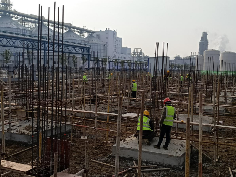在安徽中糧30萬噸/ 年燃料乙醇搬遷改造項(xiàng)目施工現(xiàn)場(chǎng),清晨雖然寒風(fēng)瑟瑟,但施工現(xiàn)場(chǎng)卻是一片火熱,施工人員正在忙而不亂地加緊進(jìn)行鋼結(jié)構(gòu)安裝、墻體砌筑、基礎(chǔ)梁架體搭設(shè)等。熱火朝天的現(xiàn)場(chǎng)讓人們忽略了冬日的寒冷,項(xiàng)目執(zhí)行經(jīng)理徐德良說:“項(xiàng)目施工有著嚴(yán)謹(jǐn)?shù)倪M(jìn)度安排,一環(huán)扣一環(huán),容不得半點(diǎn)懈怠,我們以元旦不休息的方式喜迎新年,目的就是要確保如期完成施工任務(wù),交出一份滿意的答卷”。