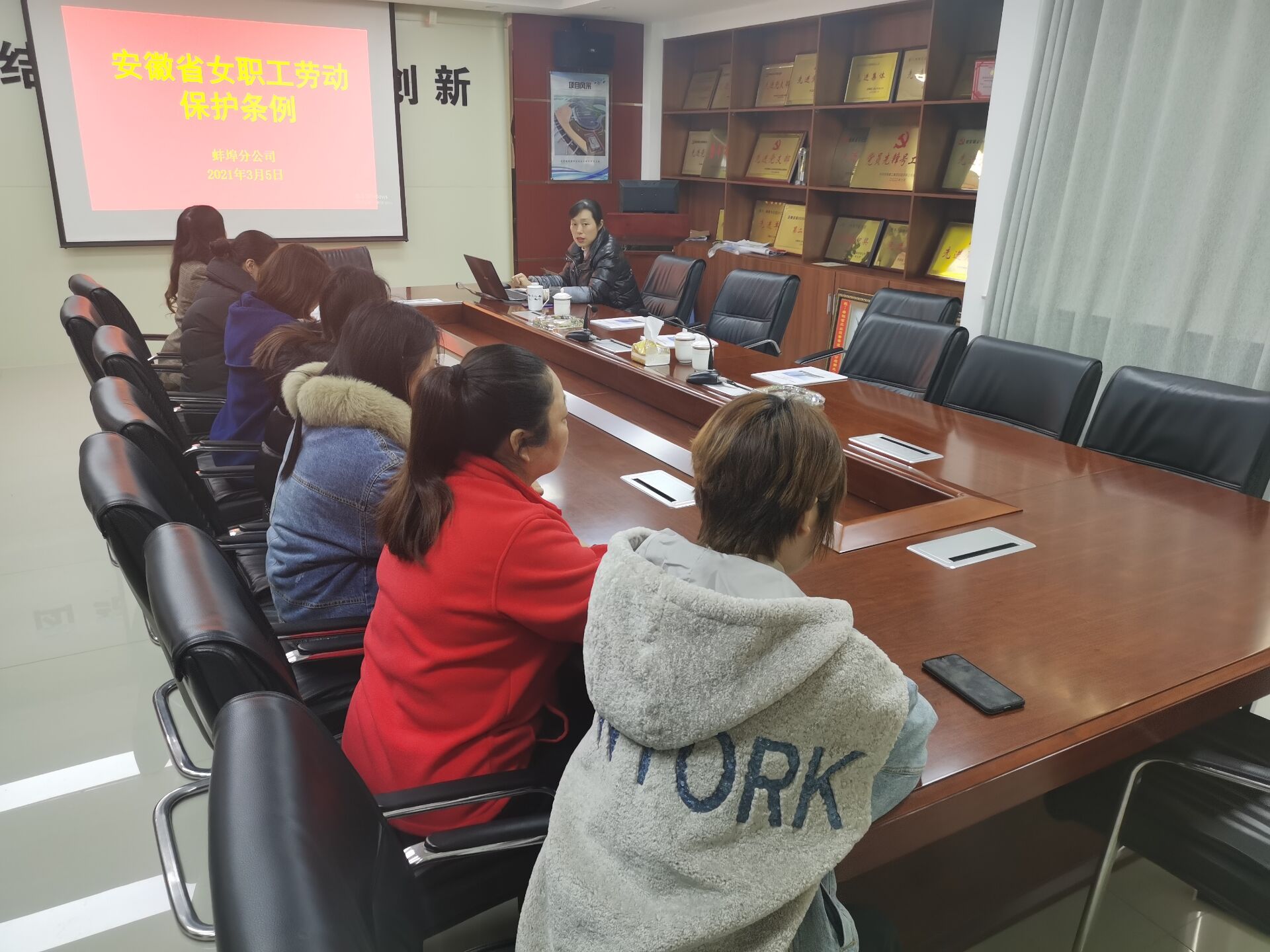 陽春三月,百草初醒,萬木崢嶸,值此第“111”個(gè)三八國際勞動(dòng)?jì)D女節(jié)來臨之際,3月5日下午,蚌埠分公司工會(huì)開展了《女職工勞動(dòng)保護(hù)特別規(guī)定》知識(shí)講座活動(dòng)。講座由分公司黨支部書記程茂麗組織,分公司全體女職工聆聽講座。