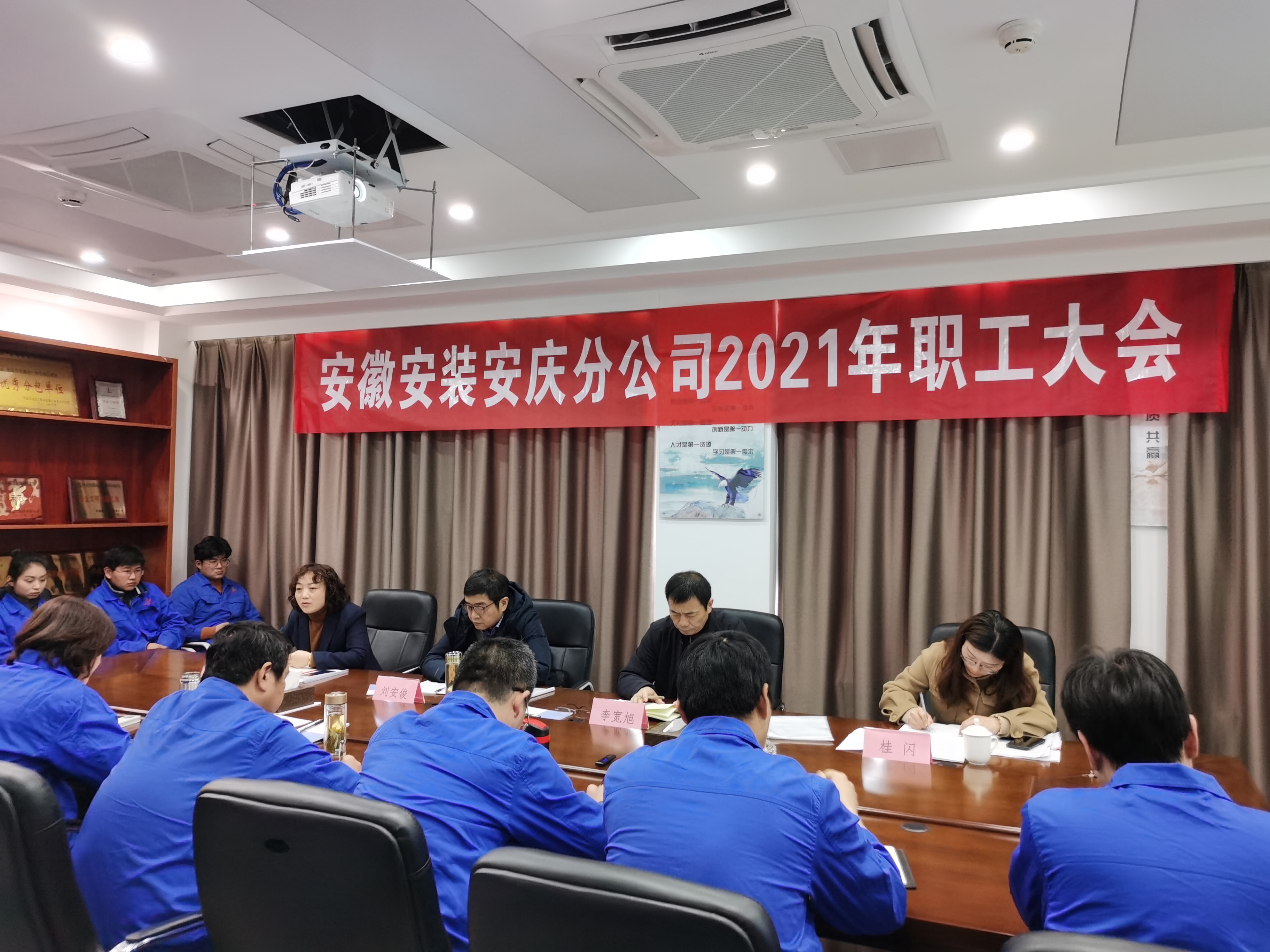 3月9日上午,安徽安裝公司安慶分公司召開(kāi)2021年職工大會(huì),公司副總經(jīng)理、安慶分公司聯(lián)系點(diǎn)領(lǐng)導(dǎo)劉安俊,紀(jì)委書記、工會(huì)主席李寬旭應(yīng)邀出席了大會(huì),人力資源部經(jīng)理王敏及黨委辦公室相關(guān)人員,分公司班子成員及機(jī)關(guān)、項(xiàng)目部員工參加會(huì)議,會(huì)議由安慶分公司黨支部書記劉紅艷主持。