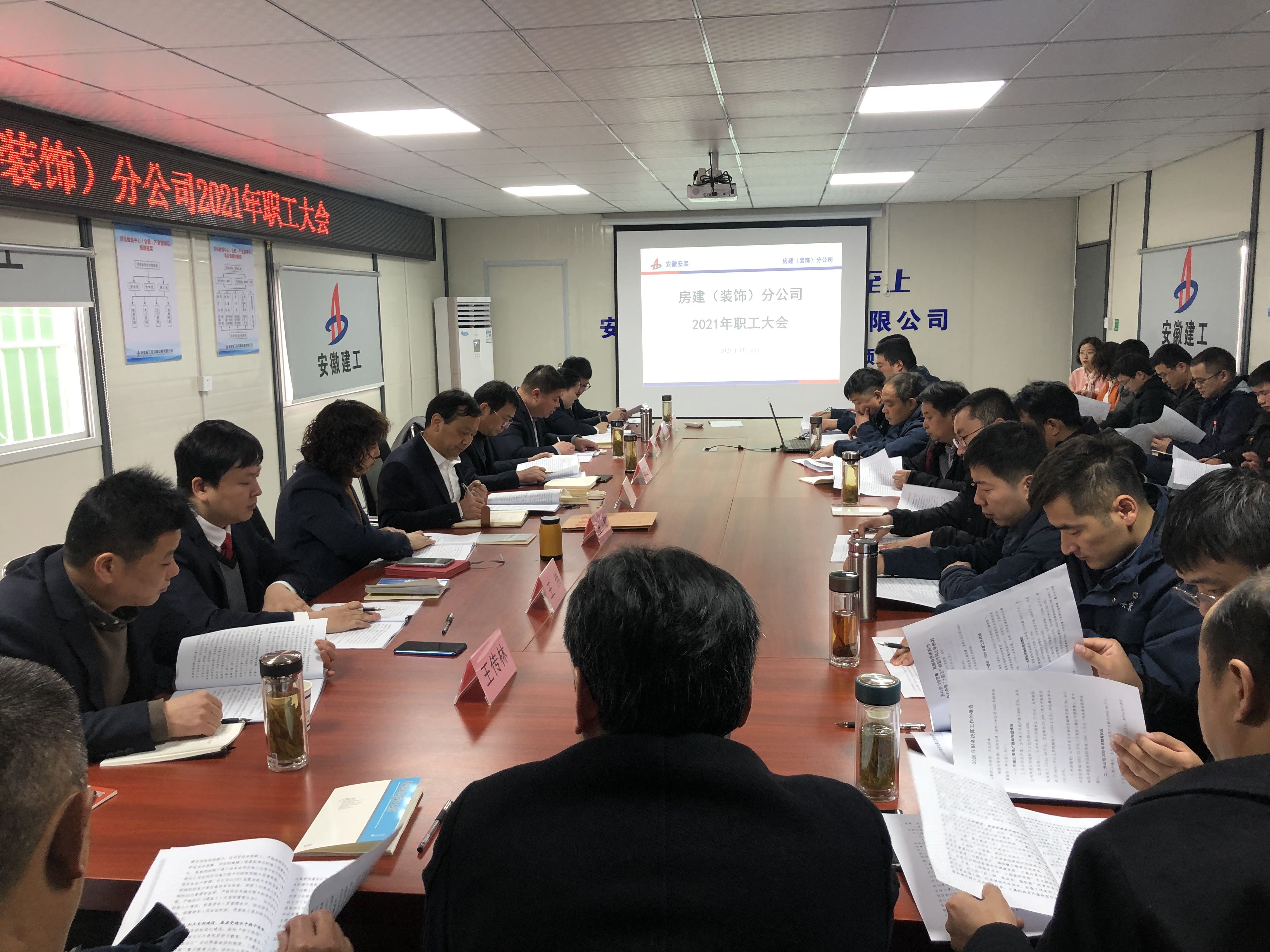仲春時節(jié),春風和煦,杏花飄香。3月12日上午,房建(裝飾)分公司在合肥勝利召開2021年度職工大會。分公司全體職工參加了大會,公司副總經理高飛,紀委書記、工會主席李寬旭,人力資源部及黨委辦公室主要負責同志應邀出席會議。