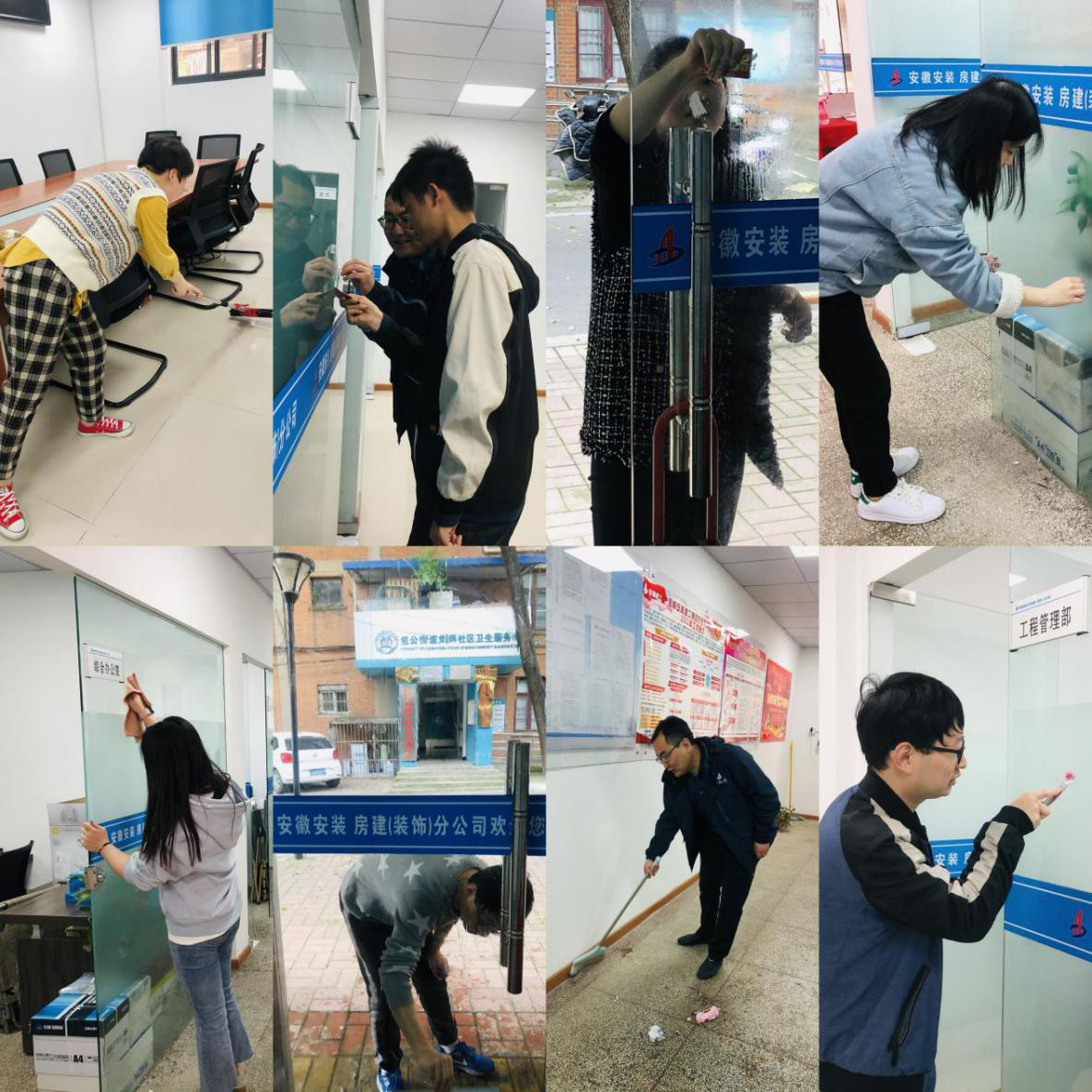 擦洗門窗,打掃會議室、整理辦公場所,修繕公共設(shè)施等,員工們拿起掃帚、簸箕等各種工具,大家分工明確,迅速行動,團(tuán)結(jié)協(xié)作,一片熱火朝天的忙碌景象,掀起了衛(wèi)生整治活動的高潮。經(jīng)過大家的努力,辦公區(qū)干凈整潔,煥然一新。