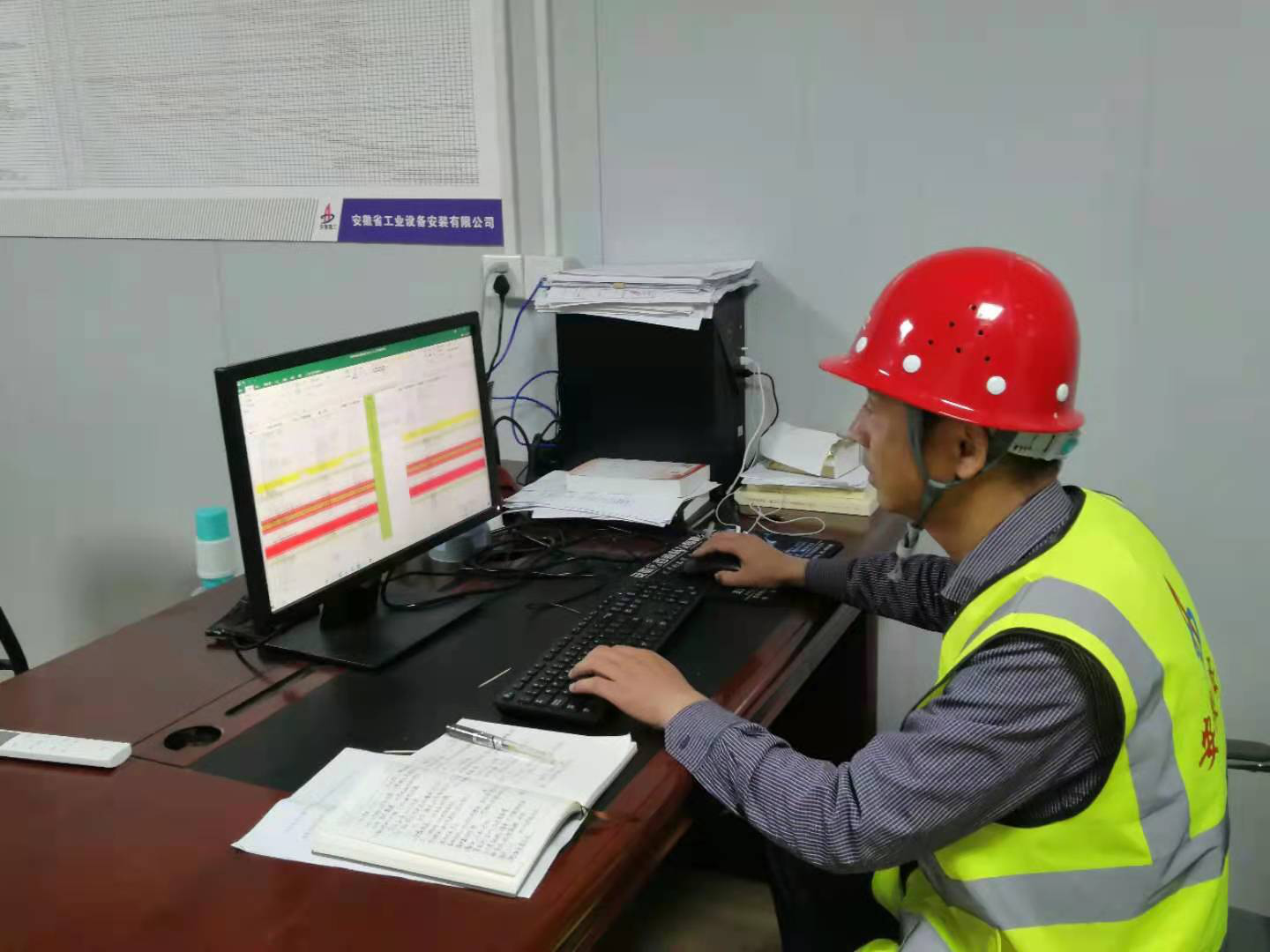 圖為項目副經(jīng)理共產(chǎn)黨員孫浩挑燈夜戰(zhàn)專心致志排查剩余工作量,記錄當(dāng)天工作日記