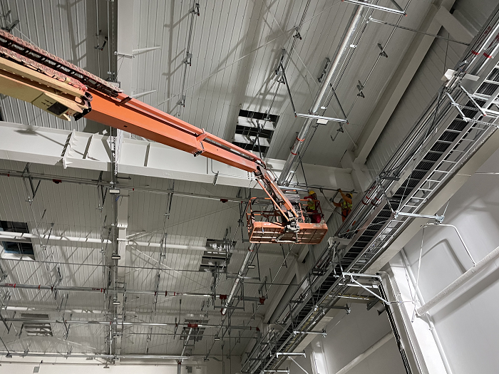 由蚌埠分公司承接的蚌埠康寧藥用硼硅玻璃管廠房設(shè)施建設(shè)工程合同主要工作內(nèi)容包括給暖通空調(diào)系統(tǒng)、給排水系統(tǒng)、消防系統(tǒng)、強(qiáng)電系統(tǒng)、弱電系統(tǒng)、各種工藝管道(氫氣、氧氣、天然氣、柴油、壓縮空氣、純水)、除塵系統(tǒng)、熱排風(fēng)系統(tǒng)、涂覆系統(tǒng)、油霧收集系統(tǒng)、共用支架與抗震支架、室外管架、起重機(jī)和單軌設(shè)備、裝卸平臺、自動地磅等各系統(tǒng)的材料設(shè)備采購及安裝工作,內(nèi)容涵蓋機(jī)電工程各個專業(yè)。