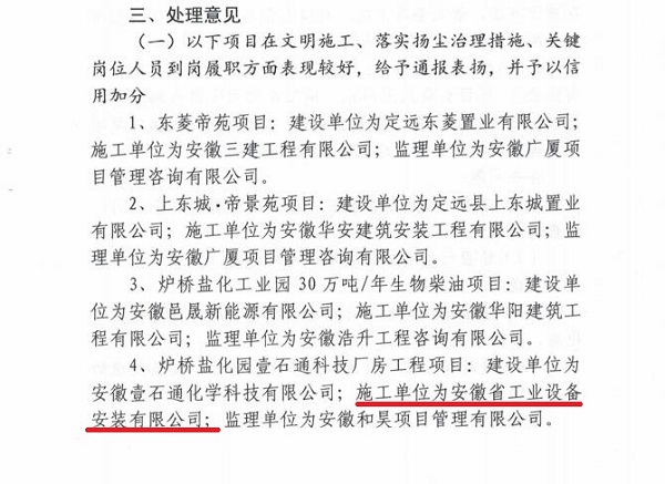 2021年8月10日上午,定遠(yuǎn)縣住房和城鄉(xiāng)建設(shè)局領(lǐng)導(dǎo)蒞臨壹石通項(xiàng)目檢查指導(dǎo)工作,并于2021年8月18日下文對(duì)壹石通項(xiàng)目表彰。