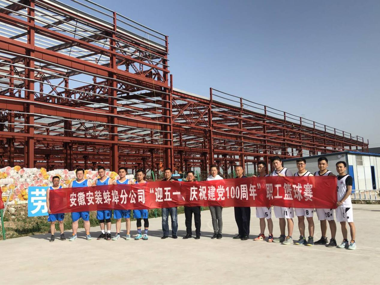 為喜迎五一,慶祝中國共產(chǎn)黨成立100周年,唱響“勞動最光榮”的主旋律,豐富職工業(yè)余文化生活,營造和諧向上、團結(jié)奮進的企業(yè)文化氛圍,4月29日下午由蚌埠分公司黨支部舉辦的“迎五一 慶祝建黨100周年”職工籃球友誼賽在蚌埠臨港產(chǎn)業(yè)園項目部室外籃球場火熱舉行。本次籃球賽兩支球隊的隊員全部為分公司各在建項目員工,分公司班子成員和部分員工觀看現(xiàn)場比賽。