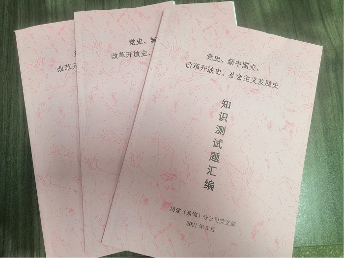 會議最后,所有與會人員簽訂了《房建(裝飾)分公司服務(wù)職工群眾踐諾書》,布置下發(fā)了《黨史、新中國史、改革開放史、社會主義發(fā)展史知識測試題匯編》。