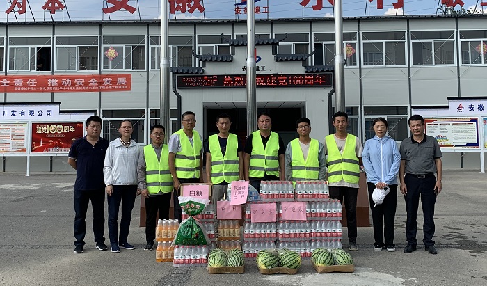 為做好高溫天氣下項(xiàng)目施工防暑降溫工作,切實(shí)保障項(xiàng)目一線職工的安全健康,確保安全生產(chǎn)工作順利展開,7月15日以來合肥分公司領(lǐng)導(dǎo)班子成員分別前往宿州新宇藥業(yè)、靈璧迎賓大道、固鎮(zhèn)三八河景觀工程、潛山高鐵站前廣場等各在建項(xiàng)目現(xiàn)場,開展夏日“送清涼”慰問活動(dòng),為現(xiàn)場一線工作人員送去防暑降溫慰問物資,并對酷暑天氣仍然堅(jiān)守在一線施工作業(yè)人員表示親切的關(guān)心和問候。