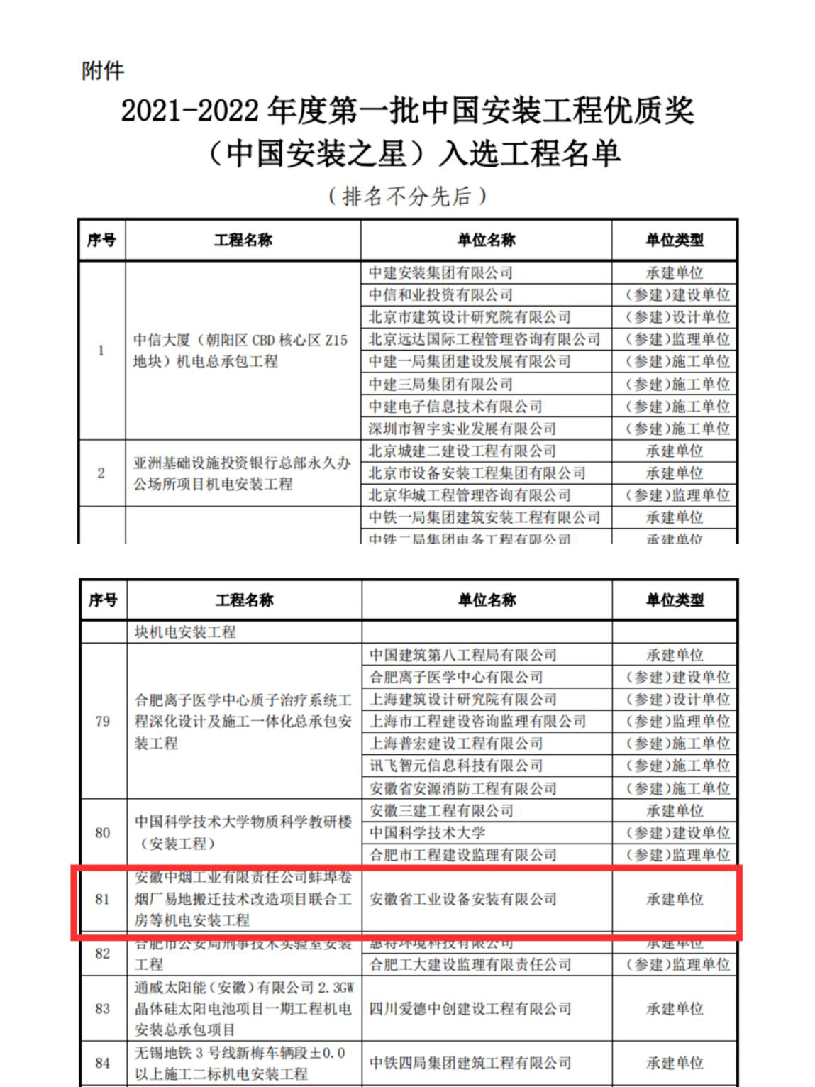2021年公司首次一年內(nèi)獲得兩項(xiàng)國(guó)家級(jí)優(yōu)質(zhì)工程獎(jiǎng),即中國(guó)鋼結(jié)構(gòu)金獎(jiǎng)、中國(guó)安裝工程優(yōu)質(zhì)獎(jiǎng)(安裝之星)。