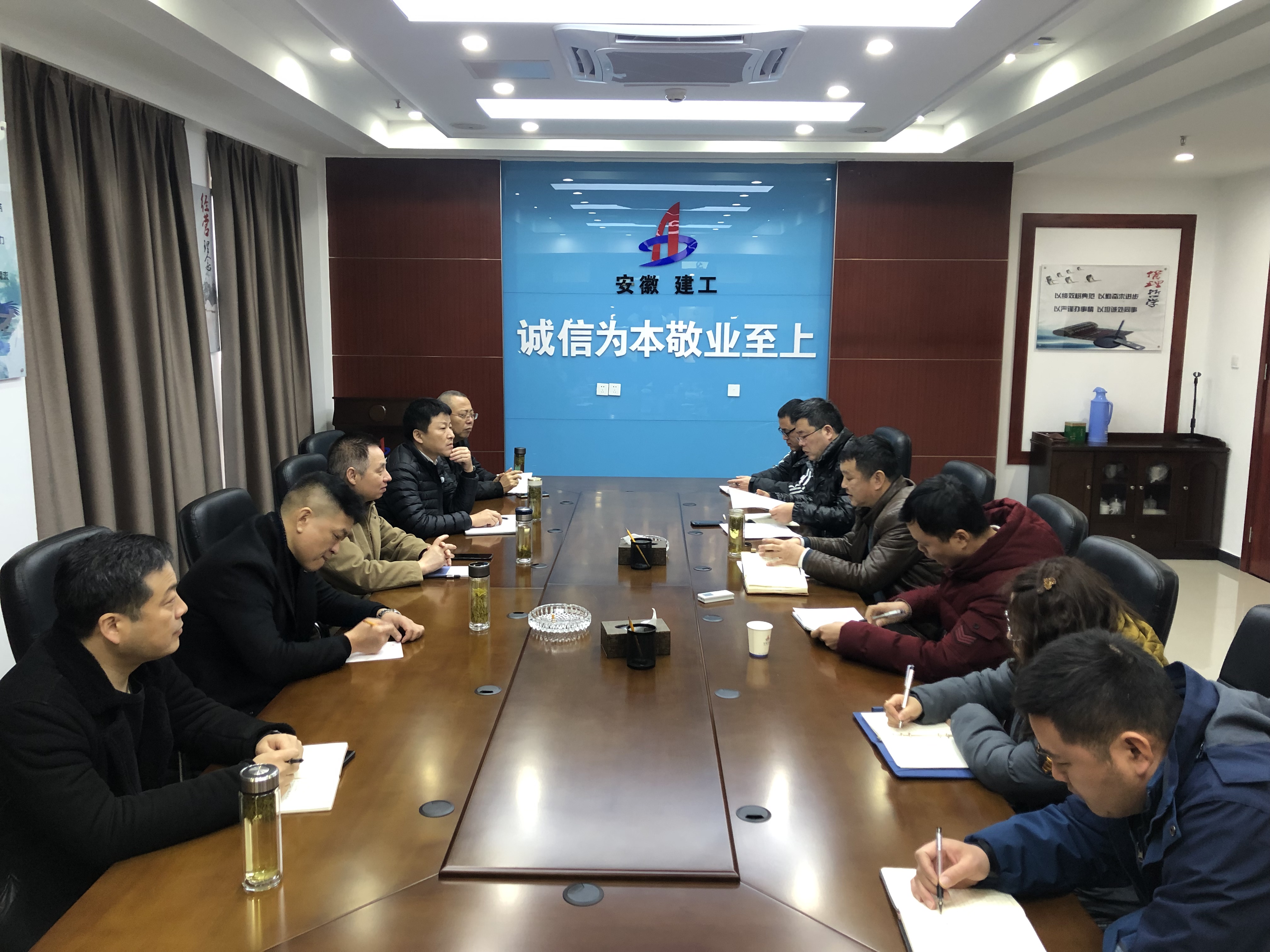 2月14日,公司黨委書記、董事長胡六中赴安慶分公司調(diào)研指導(dǎo)工作,公司副總經(jīng)理王軍、財(cái)務(wù)副總監(jiān)李雷、總經(jīng)理助理趙永峰、招標(biāo)辦主任李紹林,分公司班子成員及機(jī)關(guān)、項(xiàng)目部員工參加會(huì)議。
