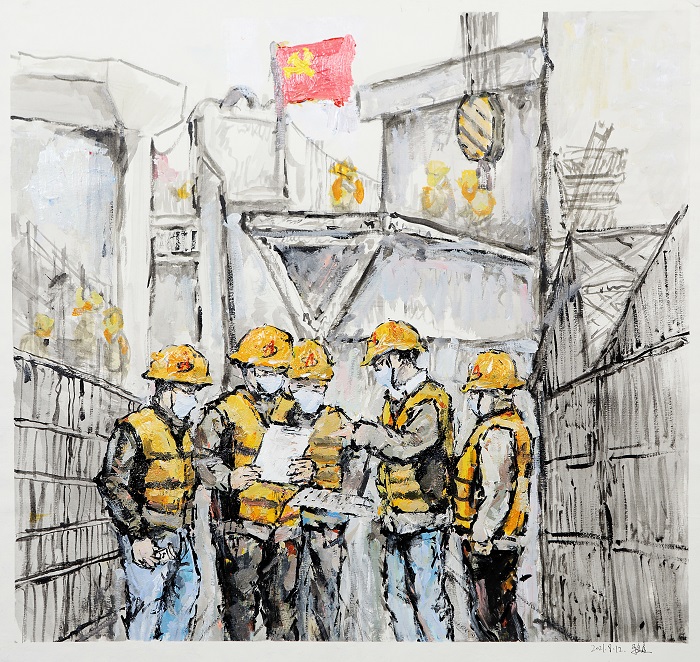 繪畫(huà)類:馬金鑫——油畫(huà)《支部建在項(xiàng)目上》