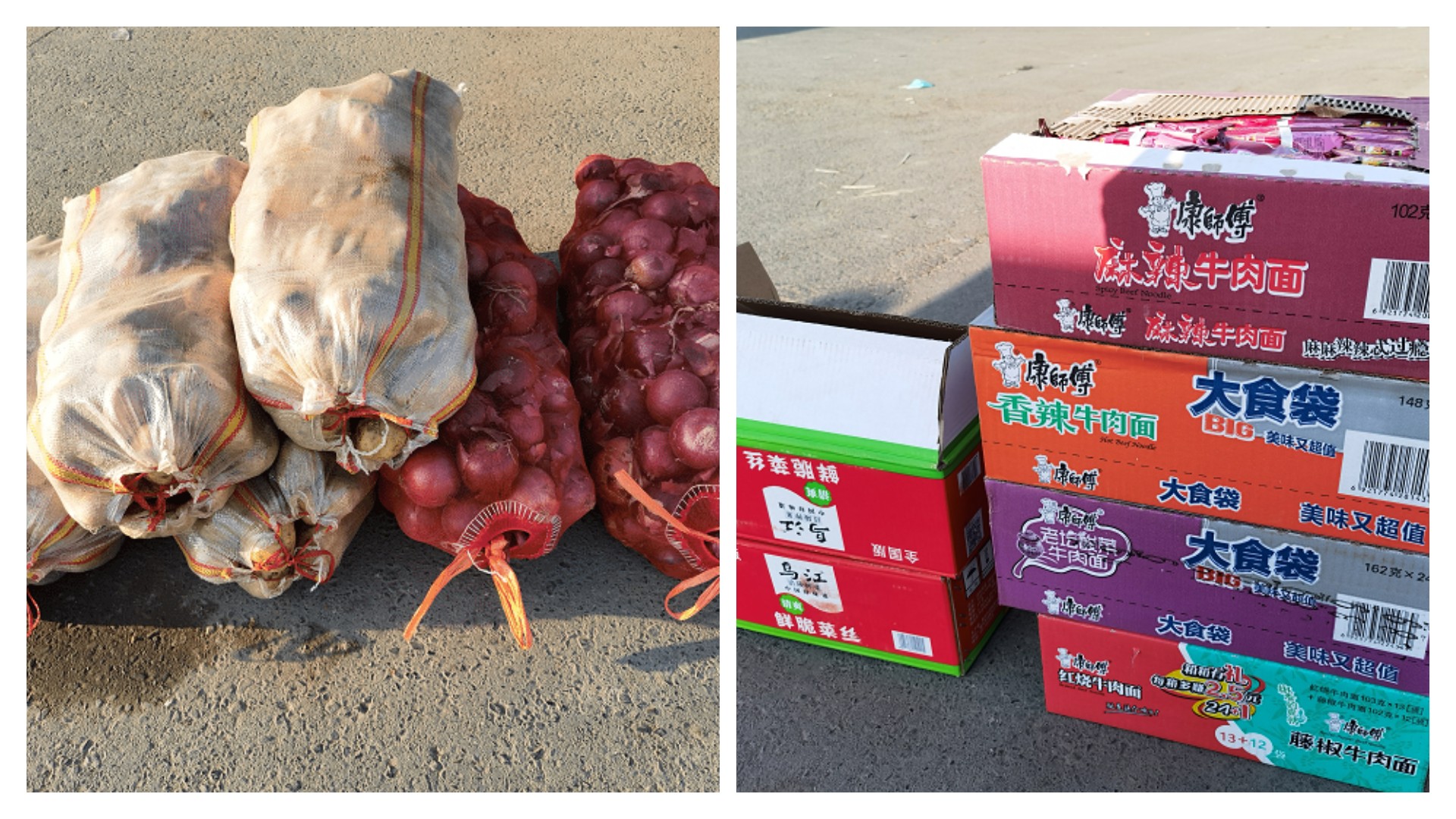 疫情反彈期間天氣炎熱,生活物資匱乏,土豆、洋蔥、方便面、榨菜等易存放食物成為項(xiàng)目部唯一“菜單”