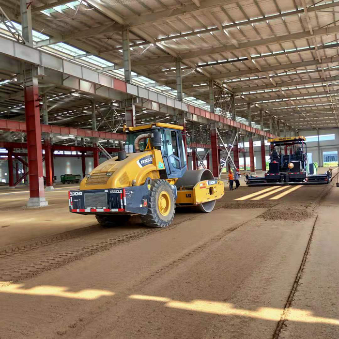 競賽期間,項目部成員堅定信心,團結(jié)一致,積極擔當作為,把競賽重要節(jié)點工作放在首位,形成各司其職,環(huán)環(huán)相扣的工作態(tài)勢。6個參建班組齊心協(xié)力,不畏艱難,按白班和夜班“白加黑”“五加二”,加班加點,吃住在施工現(xiàn)場。項目部通過增加資源調(diào)配,強化施工組織,加強施工保障,統(tǒng)籌安排,在其他分部分項工程平行推進的前提下,競賽共完成產(chǎn)值1400余萬元,累計完成地坪水穩(wěn)攤鋪、碾壓24600余噸,鋼筋加工綁扎224噸,金剛砂混凝土澆筑6500余方,項目控制性工程船舶車間31464平米地坪施工比計劃工期提前26天(計劃工期60天),比競賽目標工期提前7天,提前實現(xiàn)了節(jié)點控制目標,取得階段性突破。