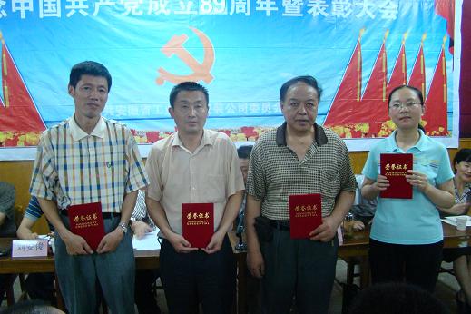 為紀(jì)念中國(guó)共產(chǎn)黨成立89周年,公司黨委于6月29日下午召開(kāi)了“紀(jì)念中國(guó)共產(chǎn)黨成立89周年暨‘創(chuàng)先爭(zhēng)優(yōu)’表彰大會(huì)”。公司在崗黨員、非黨員中層干部、入黨積極分子以及受表彰的先進(jìn)集體、先進(jìn)個(gè)人參加了大會(huì)。大會(huì)由總經(jīng)理王軍邦同志主持。