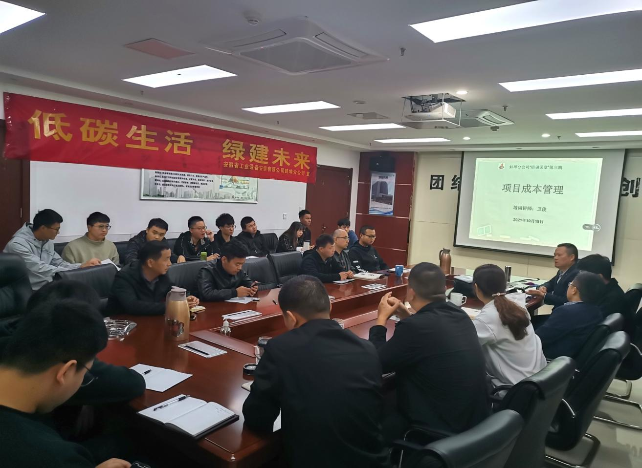 為有效提升分公司項(xiàng)目一線員工管理水平,加強(qiáng)項(xiàng)目管理及成本管理意識,10月19日到10月21日,蚌埠分公司邀請公司工程管理部經(jīng)理龍海建、成本合約部副經(jīng)理衛(wèi)俊到分公司開展相關(guān)業(yè)務(wù)知識培訓(xùn)。蚌埠分公司領(lǐng)導(dǎo)班子成員、工程管理部、成本合約部及各在建項(xiàng)目經(jīng)理、技術(shù)負(fù)責(zé)人和項(xiàng)目員工計28余人參加此次培訓(xùn)活動。