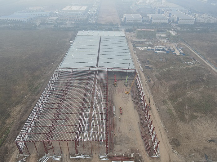 由合肥分公司承建的安徽建工智能鋼構(gòu)項目正在緊張施工中,現(xiàn)主體架構(gòu)已初現(xiàn)雛形。11月17日上午,項目部“50米跨屋面梁吊裝”工作正在進行,公司總工程師吳繼成現(xiàn)場指導吊裝工作,并為第一榀屋面梁進行掛紅儀式。公司總經(jīng)理助理、合肥分公司經(jīng)理、黨支部書記趙永峰,公司總工辦、安全部等相關(guān)部門負責同志參加。